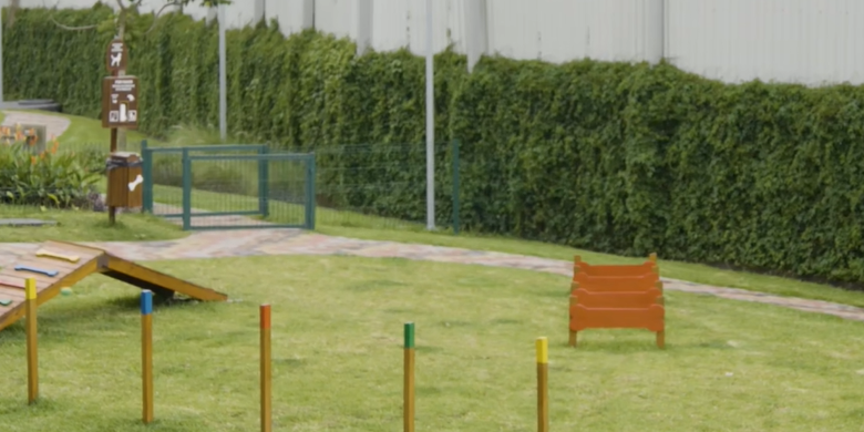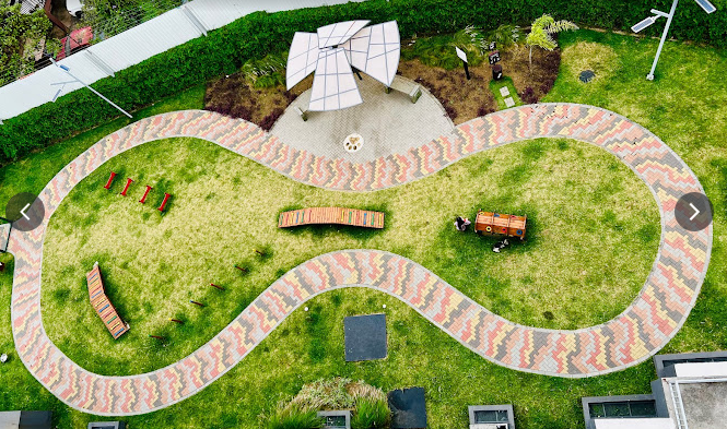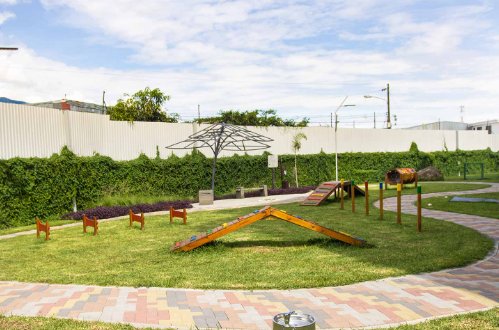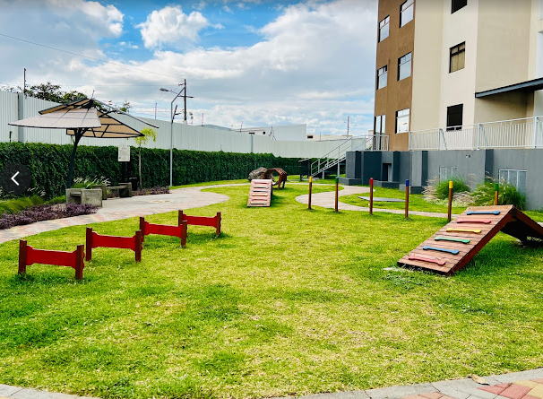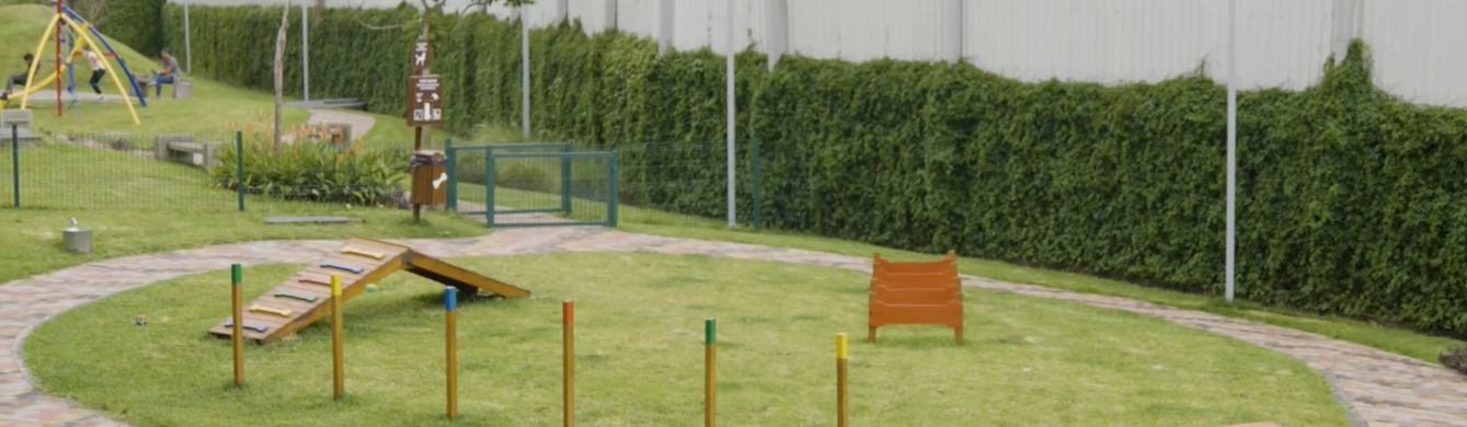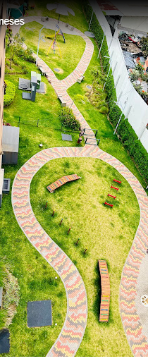 Áreas verdes con parque y senderos para caminar.