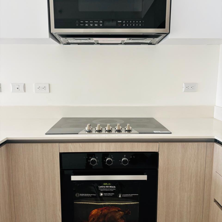 Incluye cocina, extractor empotrado, horno y microondas