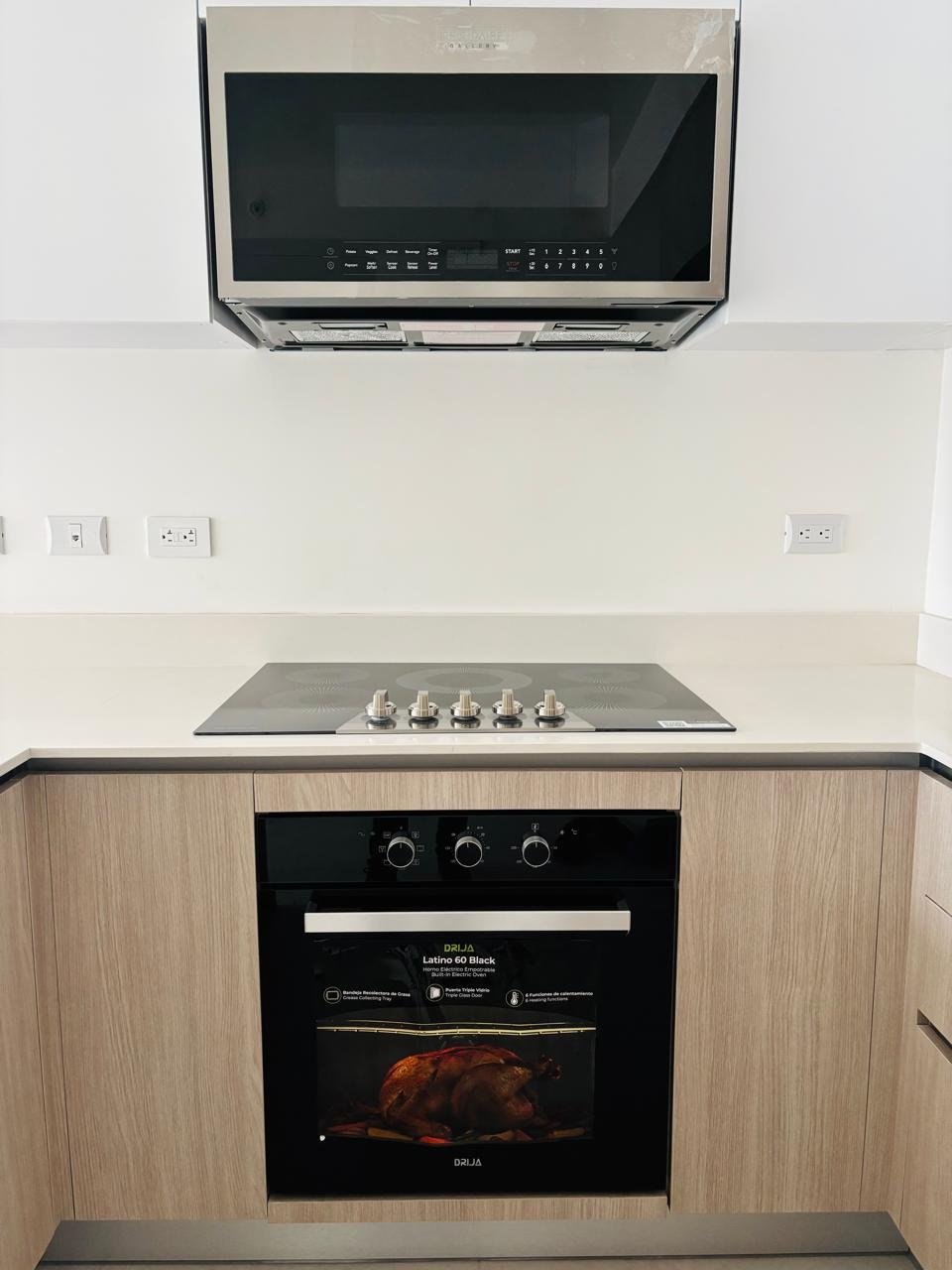 Incluye: Cocina, extractor empotrado, microondas y horno.
