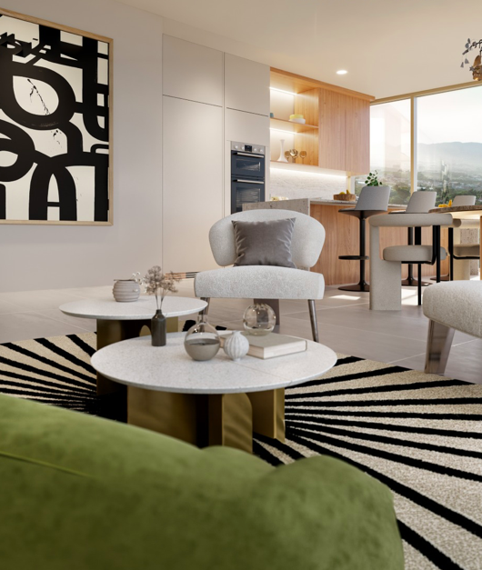 123 m² con diseño de planta con altura y ventanales de piso a techo que maximizan luz natural y vistas exclusivas